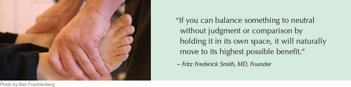 ZB was developed in the 1970’s by Fritz Frederick Smith, MD, an American physician, osteopath and acupuncturist. Dr. Smith, born in 1929, is one of the first western physicians to study acupuncture, meditation and other eastern healing methods comprehensively. Zero Balancing is his legacy, a synthesis of Eastern and western thought and method. Dr. Smith is the author of INNER BRIDGES and THE ALCHEMY OF TOUCH. A biography of Dr. Smith, LIFE IN THE BONES, by David Lauterstein is recently published. He is still teaching at 90 and lives in Palm Springs, CA with his wife, Aminah Raheem.